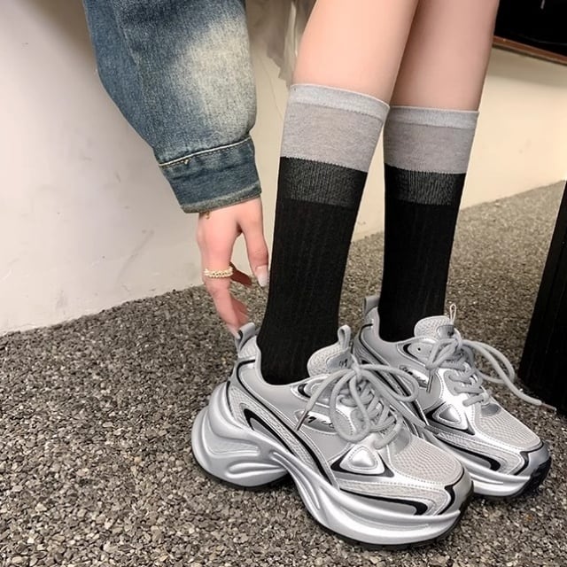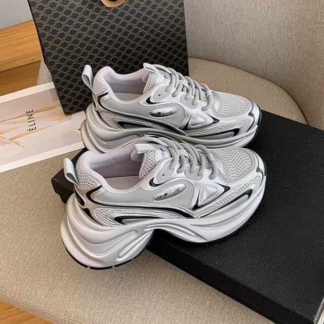 【予約販売】スニーカー 韓国 レディース ダッドシューズ ゴツ底 厚底 靴 シルバー デザイン お洒落 カジュアル ストリート ダンス 22.5cm/23cm/23.5cm/24cm/24.5cm/25cm