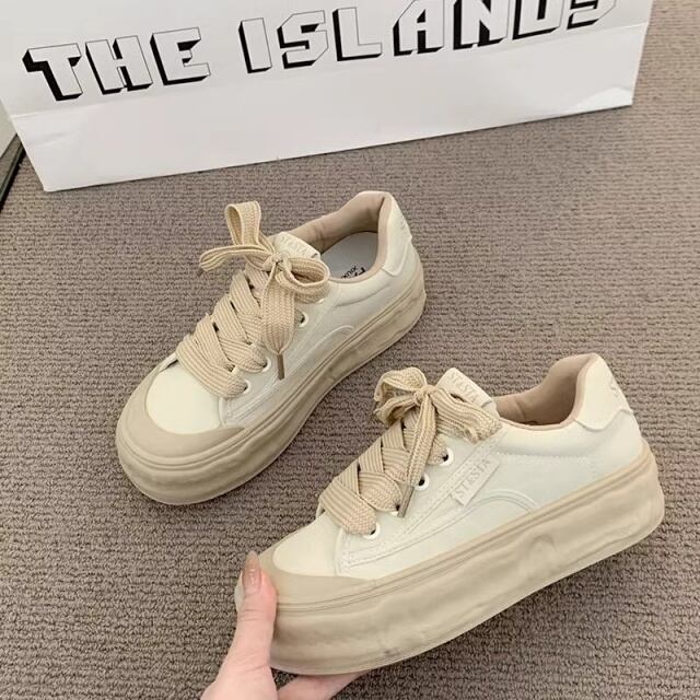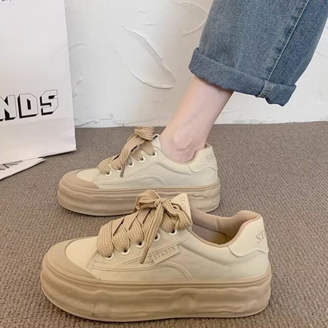 【予約販売】スニーカー 韓国 スニーカー レディース 靴 厚底 ベージュ マスタード デザイン 太紐 お洒落 大人可愛い トレンド カジュアル 韓国 ストリート ダンス 22.5cm/23cm/23.5cm/24cm/24.5cm/25cm