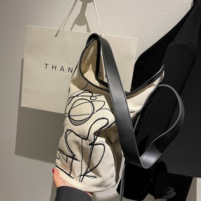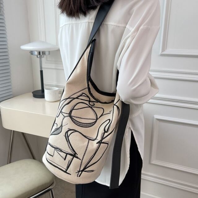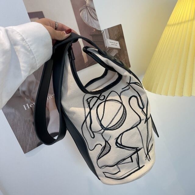 【予約販売】ショルダーバッグ ホワイト ブラウン キャンバス 斜め掛け バケツ 夏 春 秋 こなれ感 お洒落 韓国 大人可愛い トレンド