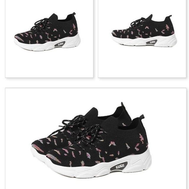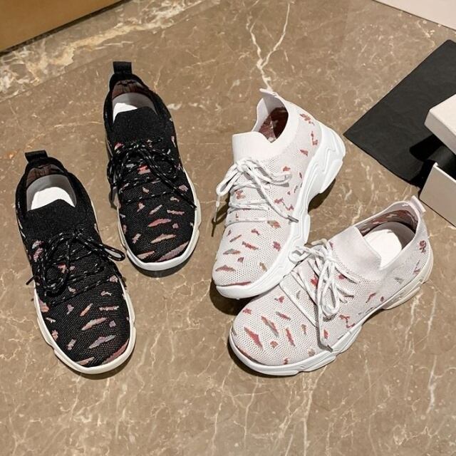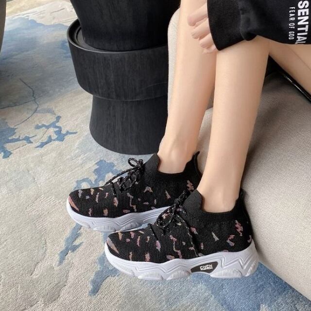 【予約販売】スニーカー 韓国 レディース 軽量 厚底 靴 ブラック 総柄 ホワイト ウォーキング ママ お洒落 カジュアル 楽ちん 23cm/23.5cm/24cm/24.5cm/25cm