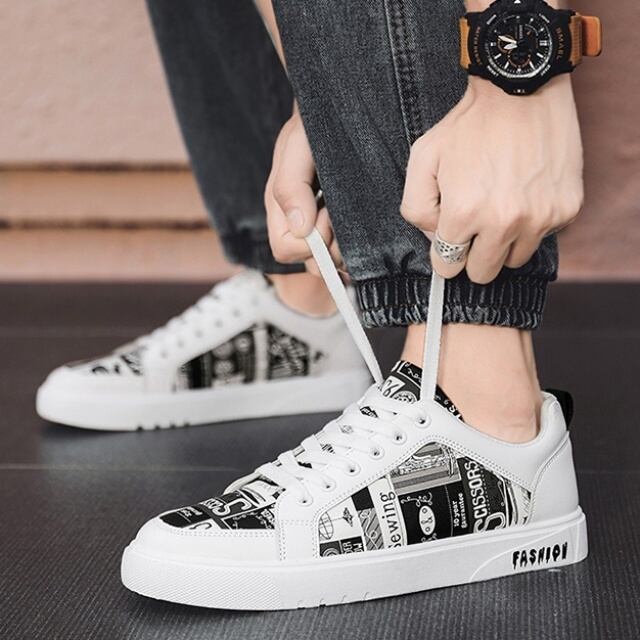 【予約販売】スニーカー 韓国 メンズ 靴 イエロー レッド ホワイト ブラック デザイン お洒落 カジュアル ストリート スケボー スケーター ダンス 24cm/24.5cm/25cm/25.5cm/26cm/26.5cm/27cm