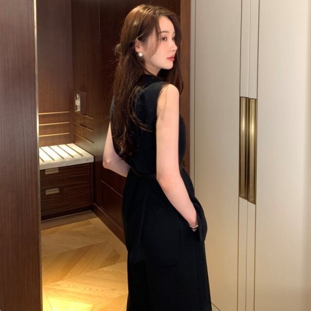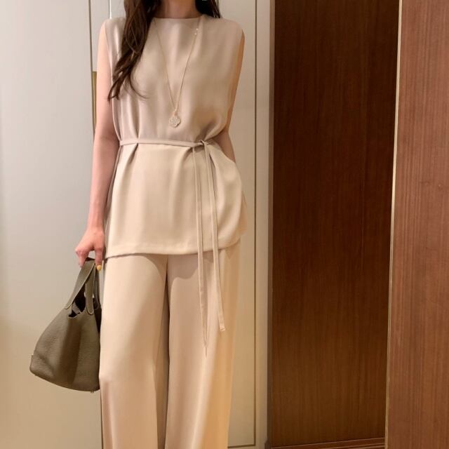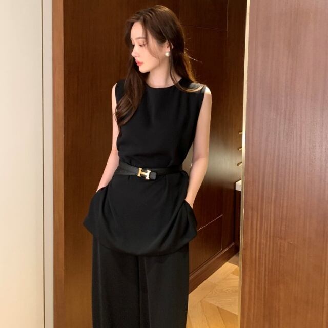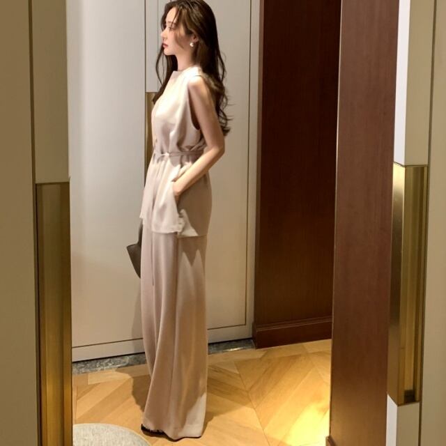 【予約販売】セットアップ レディース 無地 ベージュ ブラック ブルー ノースリーブ ワイドパンツ フォーマル 結婚式 セレモニー パーティー 美ライン こなれ感 大人可愛い 楽ちん 韓国 春 夏 トレンド フリー