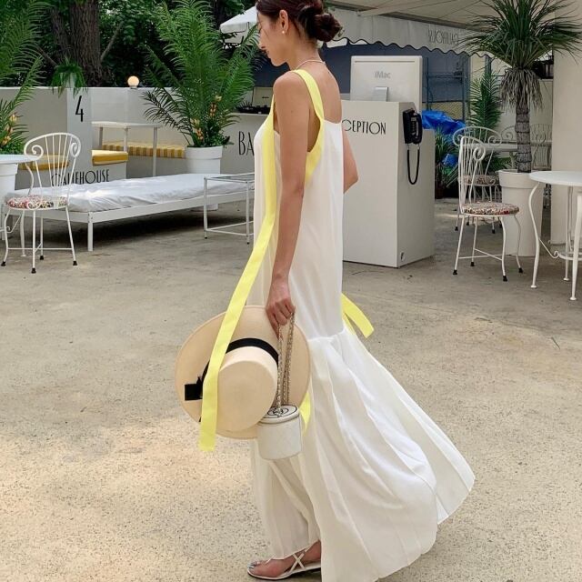 【予約販売】ワンピース レディース キャミワンピ バイカラー マキシ丈 ネイビー クリーム プリーツ ロングワンピース フェミニン フレア 体型カバー パーティー ドレス こなれ感 ワンピ 大人可愛い シンプル エレガント おしゃれ 韓国 旅行 バカンス 春 夏 ナチュラル カジュアル トレンド フリー