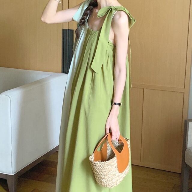 【予約販売】ワンピース レディース キャミワンピ バイカラー マキシ丈 ホワイト グリーン パープル ブラック ロングワンピース フェミニン フレア 体型カバー パーティー ドレス こなれ感 ワンピ 大人可愛い シンプル エレガント おしゃれ 韓国 旅行 バカンス 春 夏 ナチュラル カジュアル トレンド フリー