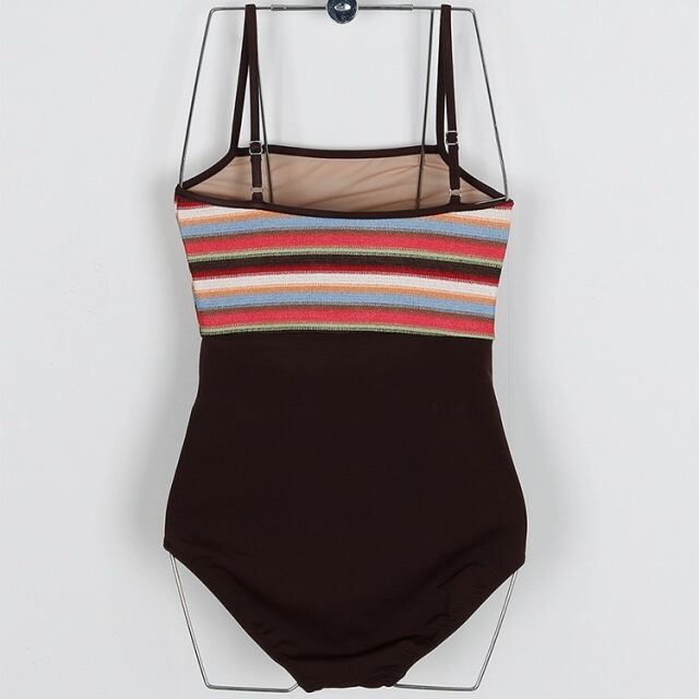 【予約販売】水着 ワンピース レディース 切り替え ブラウン ボーダー レトロ ベーシック 無地 配色 海 夏 ビーチ プール リゾート スイムウェア サウナ サ活 温泉 可愛い こなれ感 お洒落 韓国 Y2K トレンド M/L/XL