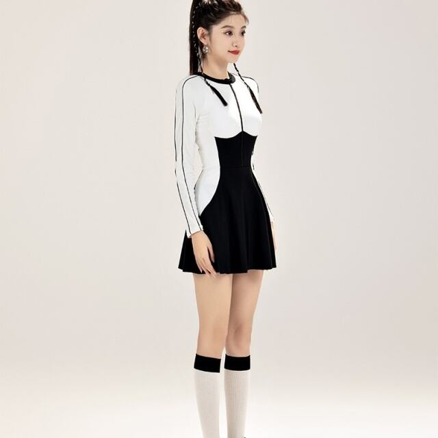 【予約販売】水着 ワンピース シアー 長袖 フレア レディース 黒 モノトーン ジップアップ 海 夏 ビーチ プール リゾート スイムウェア サウナ サ活 温泉 可愛い こなれ感 お洒落 韓国 Y2K トレンド M/L/XL/2XL