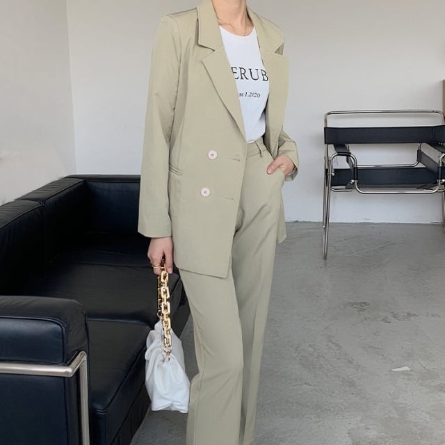 【予約販売】セットアップ ジャケット パンツ スーツ 無地 ブラック グリーンベージュ 上下 レディース 前ボタン オフィス カジュアル 体型カバー こなれ感 大人可愛い シンプル おしゃれ 韓国 ビジネス 通勤 春 夏 秋 冬 トレンド S/M/L/XL
