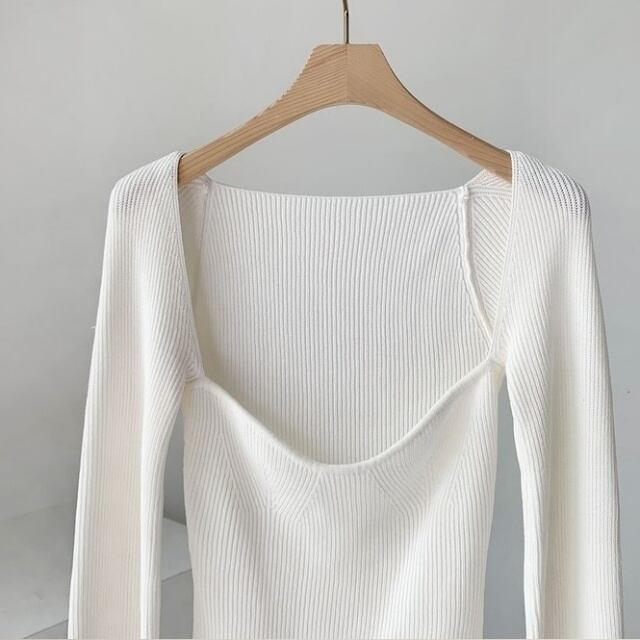 【予約販売】 カットソー デコルテ リブ 肌見せ 長袖 トップス レディース ホワイト ブラック フェミニン こなれ感 大人可愛い シンプル おしゃれ 韓国 旅行 バカンス 春 夏 秋 冬 デート トレンド フリー