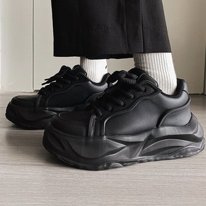 【予約販売】スニーカー 韓国 ダッドシューズ メンズ ゴツ底 厚底 靴 白 ホワイト ブラック 黒 レザー デザイン お洒落 カジュアル ストリート 24cm/24.5cm/25cm/25.5cm/26cm/26.5cm/27cm