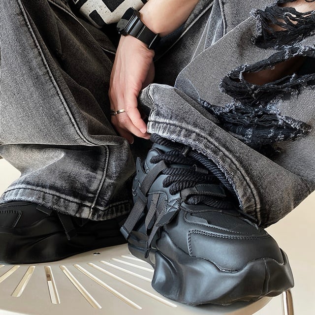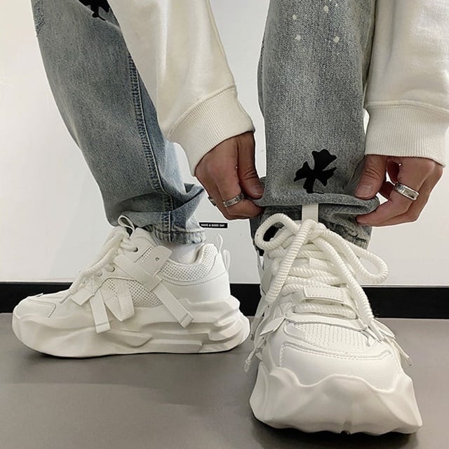 【予約販売】スニーカー 韓国 メッシュ ダッドシューズ メンズ ゴツ底 厚底 靴 白 ホワイト ブラック 黒 レザー デザイン お洒落 カジュアル ストリート 24cm/24.5cm/25cm/25.5cm/26cm/26.5cm