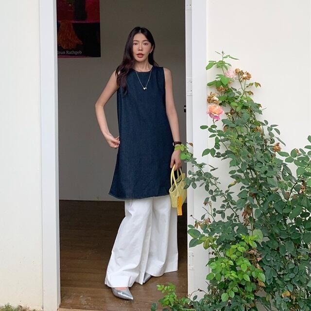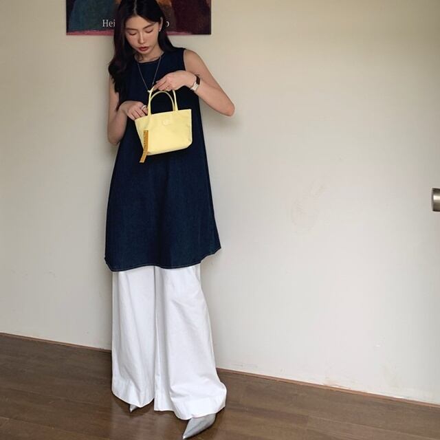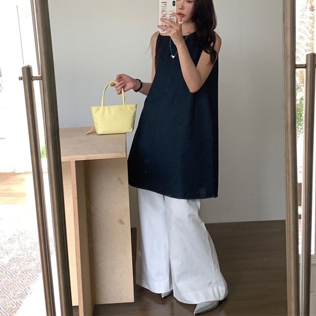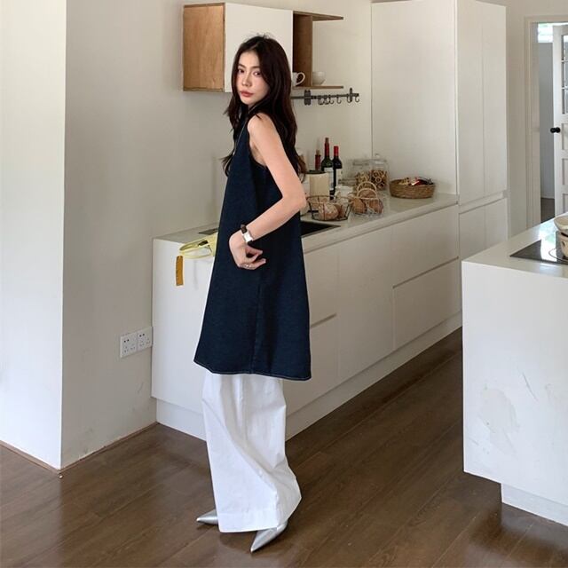 【予約販売】セットアップ レディース デニム ワンピース ワイドパンツ ホワイト 上下 オフィス カジュアル 体型カバー こなれ感 大人可愛い シンプル おしゃれ 韓国 通勤 旅行 バカンス 春 夏 秋 トレンド S/L