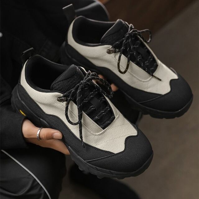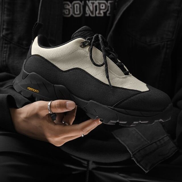 【予約販売】スニーカー 韓国 メンズ キャンバス ゴツ底 厚底 靴 ブラック 黒 ホワイト バイカラー デザイン お洒落 カジュアル ストリート シック 通勤 24cm/24.5cm/25cm/25.5cm/26cm/26.5cm/27cm