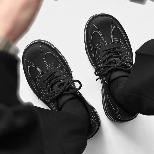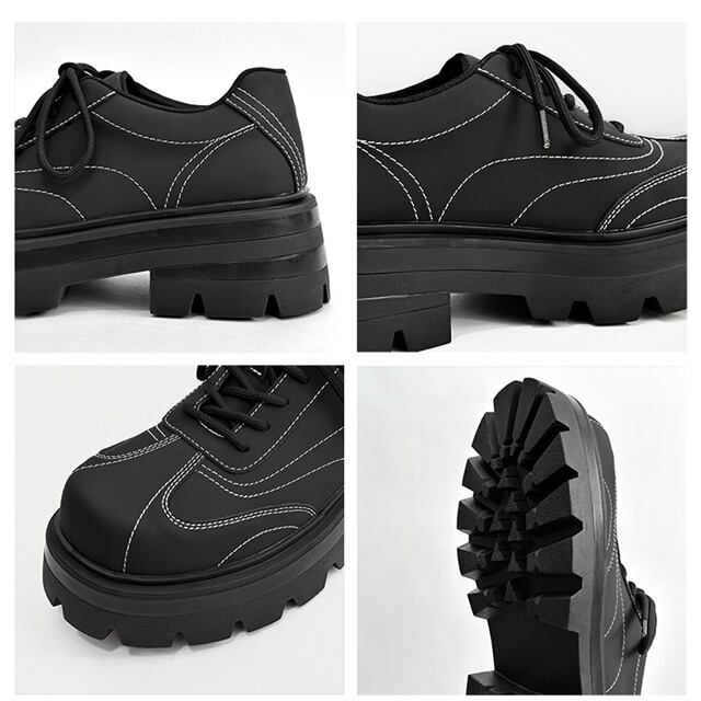 【予約販売】レザーシューズ 革靴 メンズ ローファー ホワイトステッチ 刺繍 レースアップ 厚底 シンプル 靴 デザイン フォーマル モード ブラック 黒 クラシカル お洒落 カジュアル シック パーティー 結婚式 24cm/24.5cm/25cm/25.5cm/26cm/26.5cm/27cm