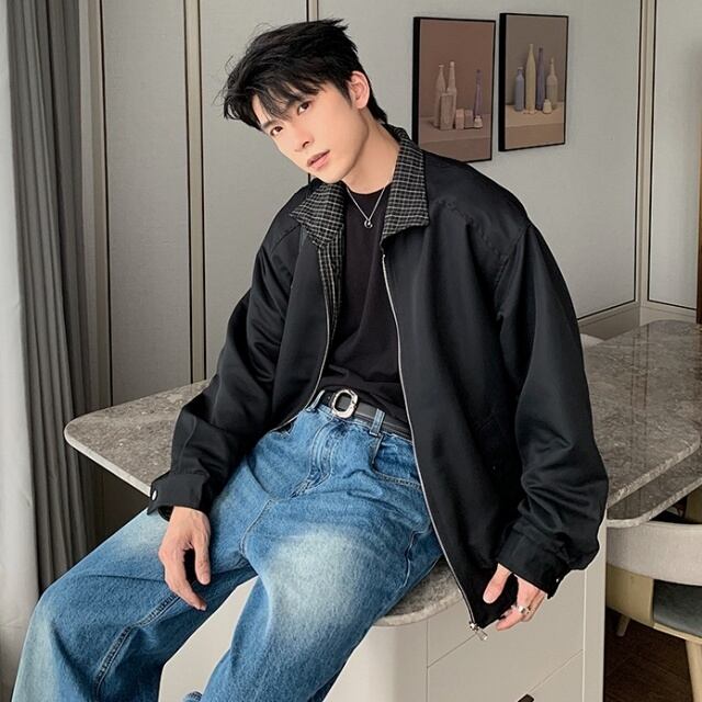 【予約販売】ブルゾン メンズ アウター ブラック ベージュ リバーシブル バイカラー ショート丈 ジップアップ メンズ レトロ クラシカル お洒落 こなれ感 シック トレンド 秋 春 M/L/XL
