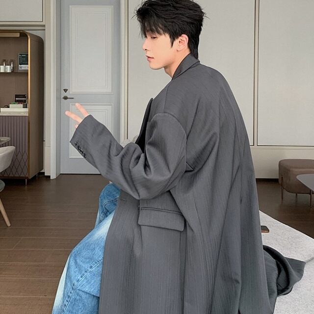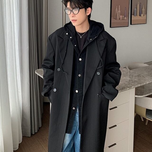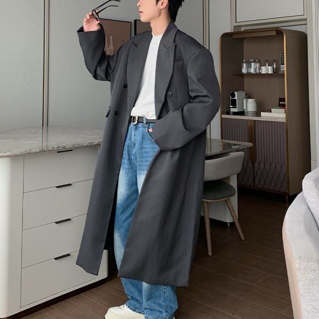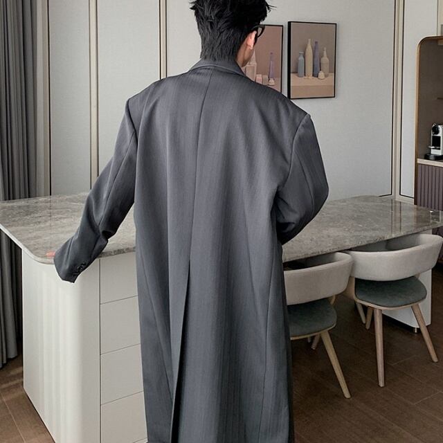 【予約販売】コート メンズ ロング丈 無地 グレー ブラック ビジネス アウター 防寒 こなれ感 カジュアル シンプル お洒落 羽織 こなれ感 韓国 トレンド 冬 秋 S/M/L