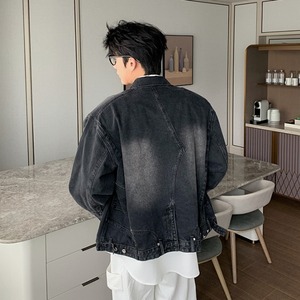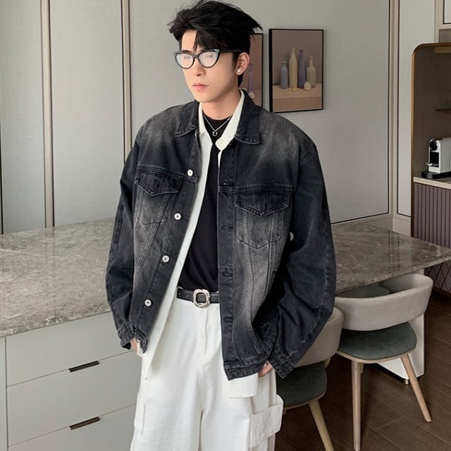 【予約販売】ジャケット Gジャン メンズ ブルー ブラック ショート丈 デニム 色落ち ウォッシュ加工 こなれ感 お洒落 かっこいい 韓国 トレンド 春 秋 冬 M/L/XL