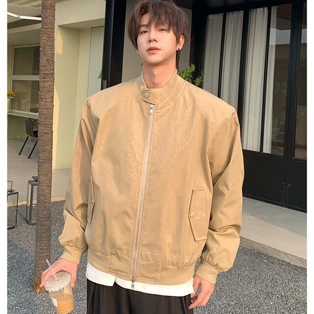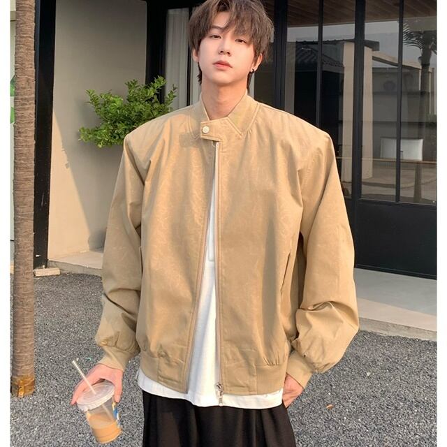 【予約販売】ジャケット ブルゾン メンズ アウター ジップアップ ブラック ベージュ シンプル ショルダーパッド ショート丈 メンズ レトロ クラシカル お洒落 こなれ感 シック トレンド 秋 春 M/L/XL