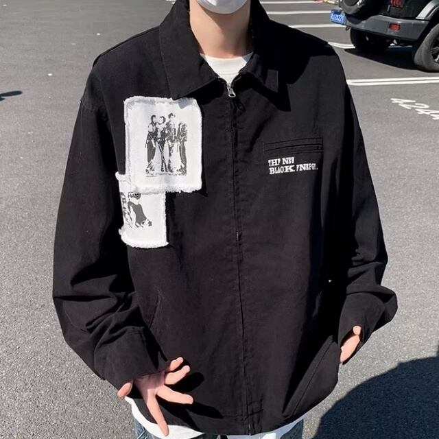 【予約販売】ブルゾン アウター バックプリント ジャンパー メンズ ブラック レッド ショート スタジャン こなれ感 カジュアル かっこいい 韓国 トレンド 春 秋 M/L/XL/2XL