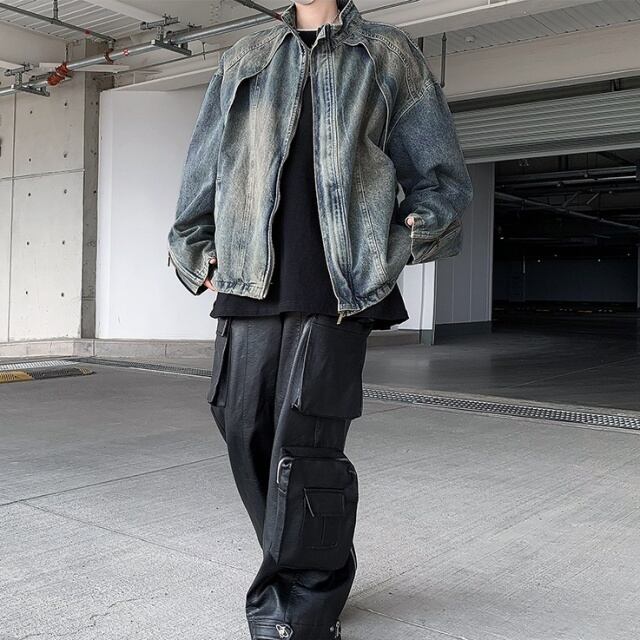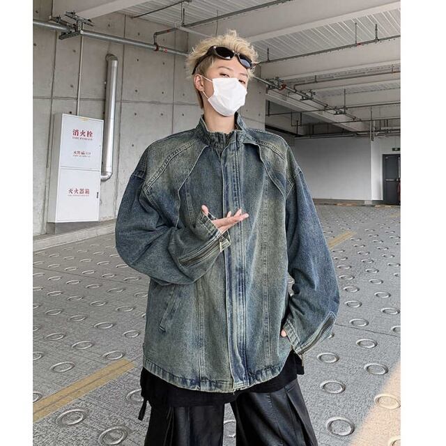 【予約販売】 ジージャン メンズ Gジャン ウォッシュ加工 ブルゾン 長袖 スタンドカラー デニム アウター ショート丈 無地 お洒落 こなれ感 韓国 ベーシック 秋 冬 M/L/XL/2XL/3XL