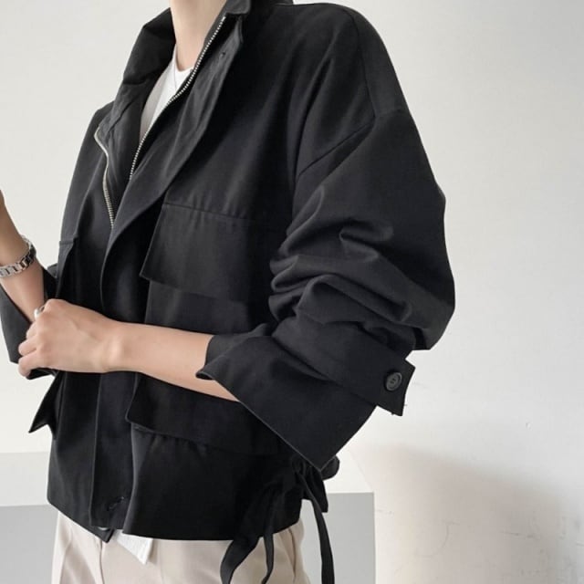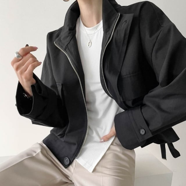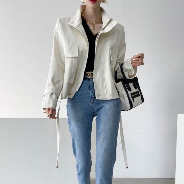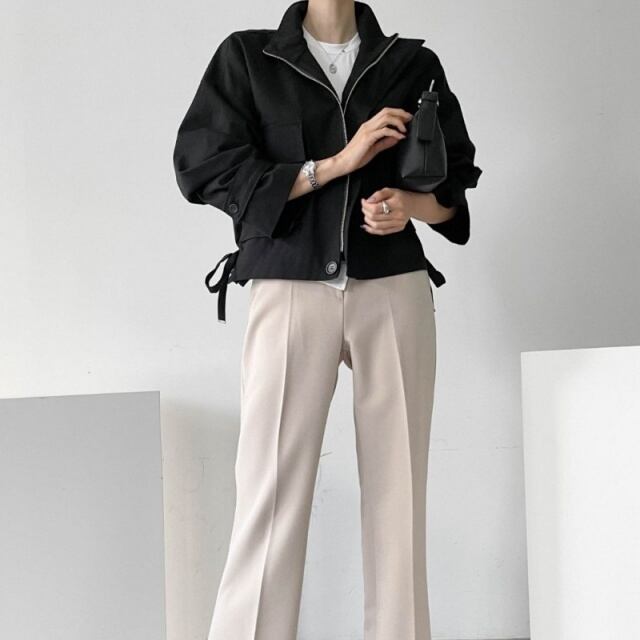 【予約販売】ブルゾン レディース アウター ショート丈 ステンカラー ブラック ホワイト ベージュ こなれ感 通勤 大人可愛い シンプル 防寒 韓国 フリー