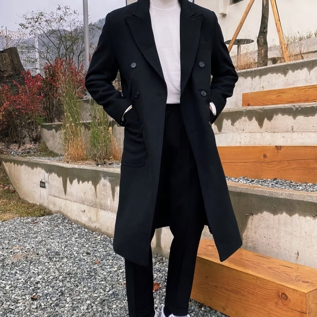【予約販売】チェスターコート ロング丈 メンズ 無地 ブラック アウター 防寒 こなれ感 カジュアル ビジネス 通勤 シンプル お洒落 羽織 こなれ感 韓国 トレンド 冬 秋 M/L/XL
