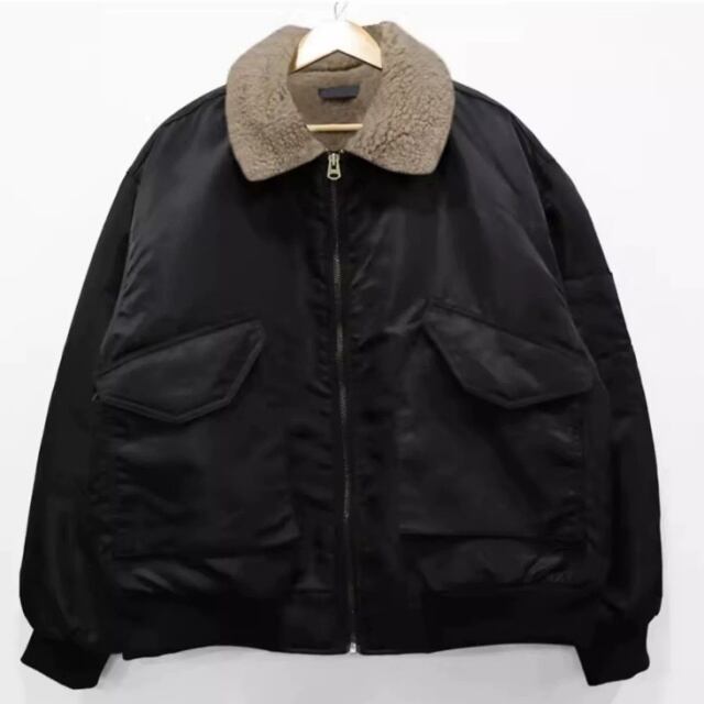 【予約販売】ブルゾン メンズ アウター ジャンバー 襟ボア ショート丈 無地 シンプル カーキ ブラック 防寒 ジャケット ベーシック お洒落 韓国 トレンド 秋 冬 M/L/XL