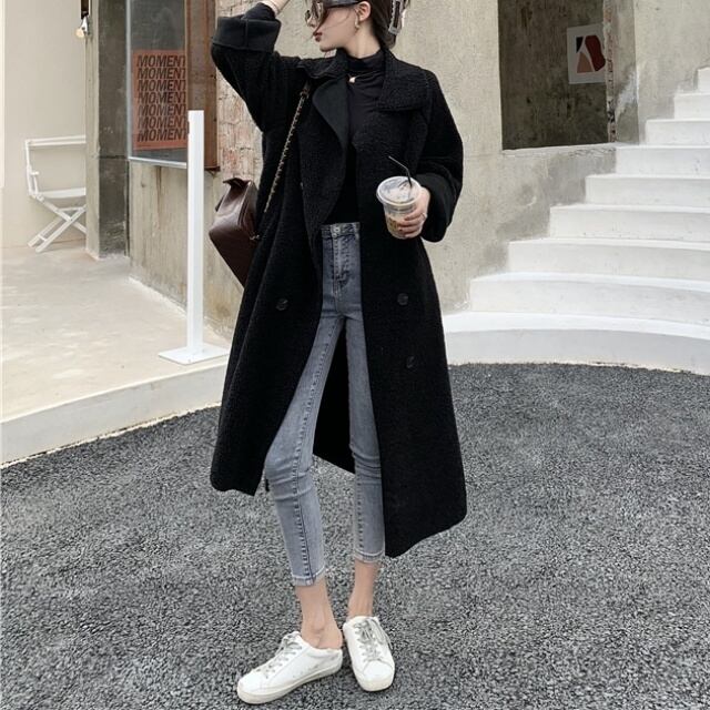 【予約販売】チェスターコート レディース アウター ロング丈 ボア もこもこ こなれブラック オフホワイト こなれ感 通勤 大人可愛い シンプル 防寒 韓国 フリー