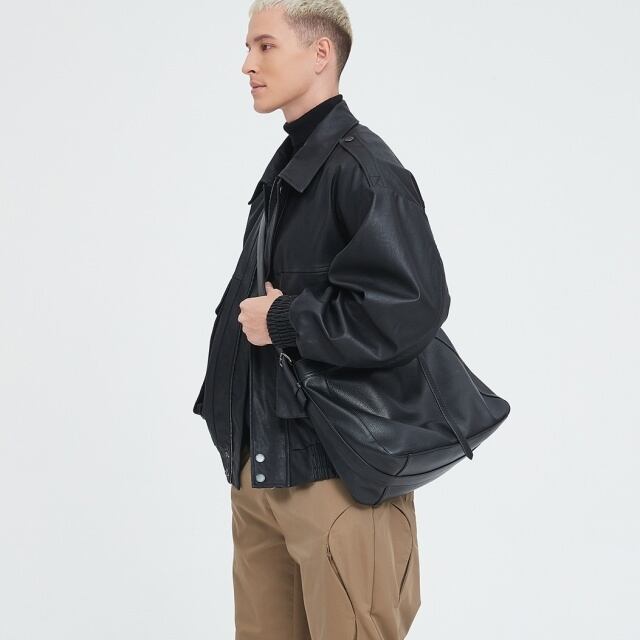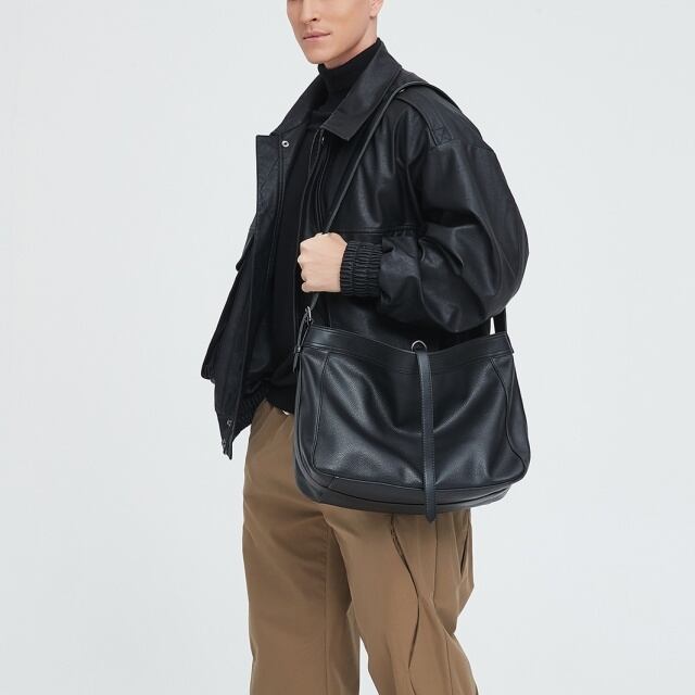 【予約販売】ショルダーバッグ メンズ シンプル レザー 黒 ブラック 斜め掛け ボディバッグ カジュアル シック こなれ感 お洒落 韓国 トレンド