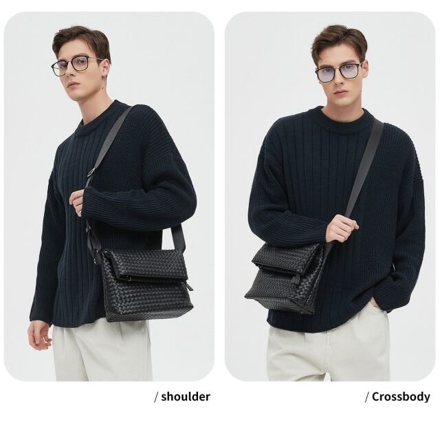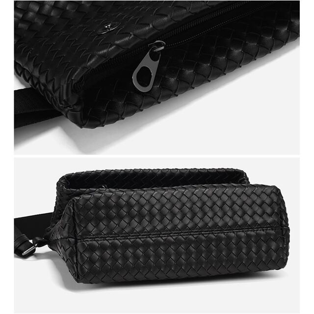 【予約販売】ショルダーバッグ メンズ メッシュ 編み込み シンプル レザー 黒 ブラック 斜め掛け ボディバッグ カジュアル シック こなれ感 お洒落 韓国 トレンド