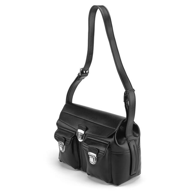 【予約販売】ショルダーバッグ メンズ シンプル レザー 黒 ブラック 斜め掛け 肩掛け カジュアル シック こなれ感 お洒落 韓国 トレンド