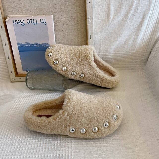 【予約販売】ボアスリッポン スリッパ レディース ブラック ブラウン ベージュ パール 防寒 カジュアル 可愛い トレンド 靴 お洒落 韓国 秋 冬 22.5cm/23cm/23.5cm/24cm/24.5cm/25cm