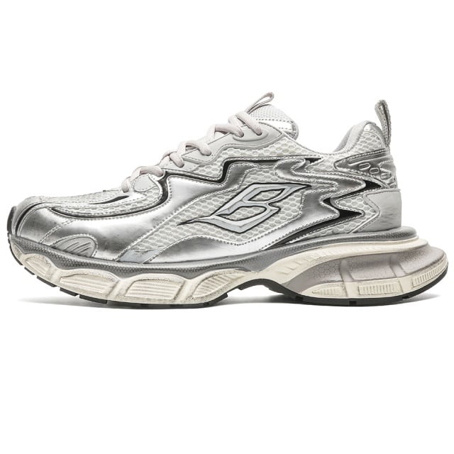 【予約販売】スニーカー 韓国 ダッドシューズ メンズ ゴツ底 厚底 靴 シルバー レザー デザイン お洒落 カジュアル ストリート 24.5cm/25cm/25.5cm/26cm/26.5cm/27cm
