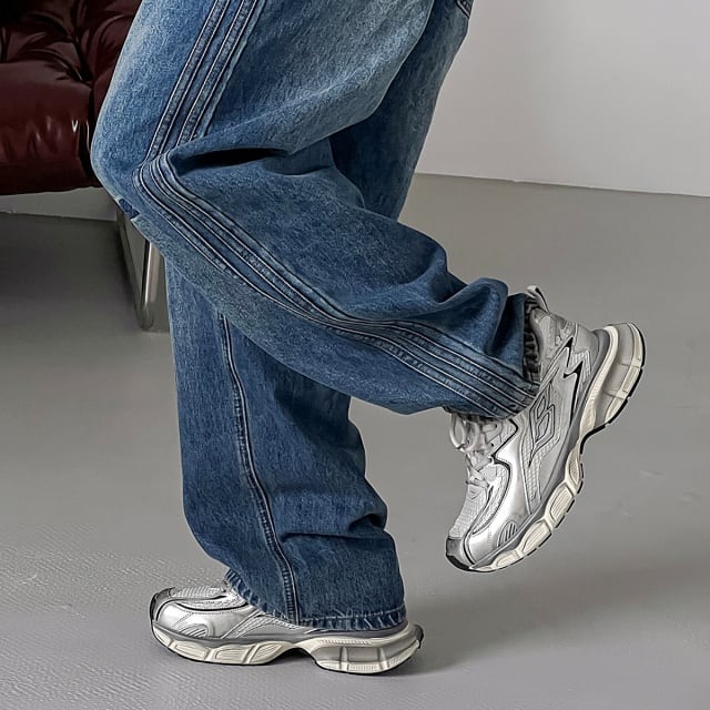 トレンドのメタリックカラーのスニーカー◎