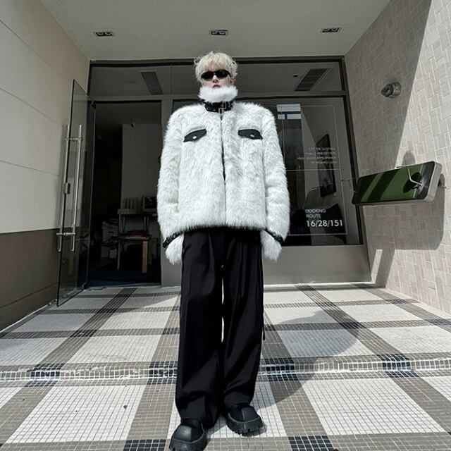 【予約販売】ファーコート リバーシブル 2WAY フェイクファー メンズ アウター ホワイト ブラック バイカラー ショート丈 ボリューム 防寒 お洒落 こなれ感 ベーシック 秋冬 M/L/XL