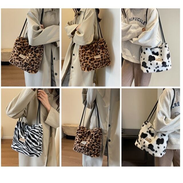 【予約販売】ファーバッグ ショルダーバッグ アニマル柄 ヒョウ柄 牛柄 ゼブラ柄 こなれ感 お洒落 韓国 大人可愛い トレンド
