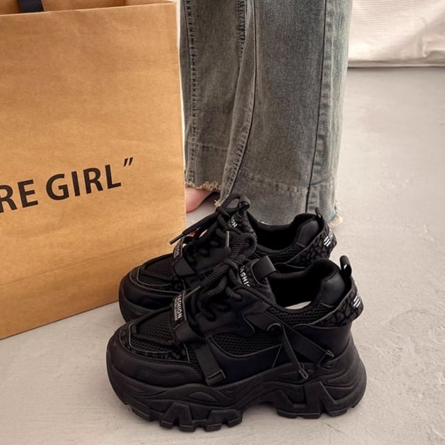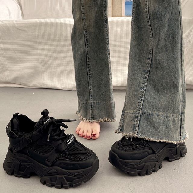 【予約販売】スニーカー 韓国 デザインソール レディース ダッドシューズ 身長UP 厚底 上げ底 靴 ベージュ ブラック 黒 お洒落 カジュアル ストリート ダンス 22.5cm/23cm/23.5cm/24cm/24.5cm/25cm